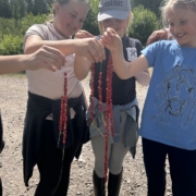 Vi rider två gånger om dagen med flera aktiviteter där emellan. Vi åker och badar och vi har hemliga uppdrag längs vägen. Detta lägret är det 12 års gräns.